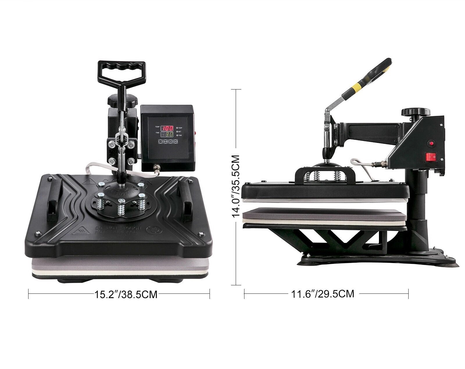 Eenvoudig te Gebruiken: Deze warmtepers is ontworpen met gebruiksgemak in gedachten. Het digitale display en de gebruiksvriendelijke bediening maken het gemakkelijk om aan de slag te gaan, zelfs als je nieuw bent in het bedrukken.