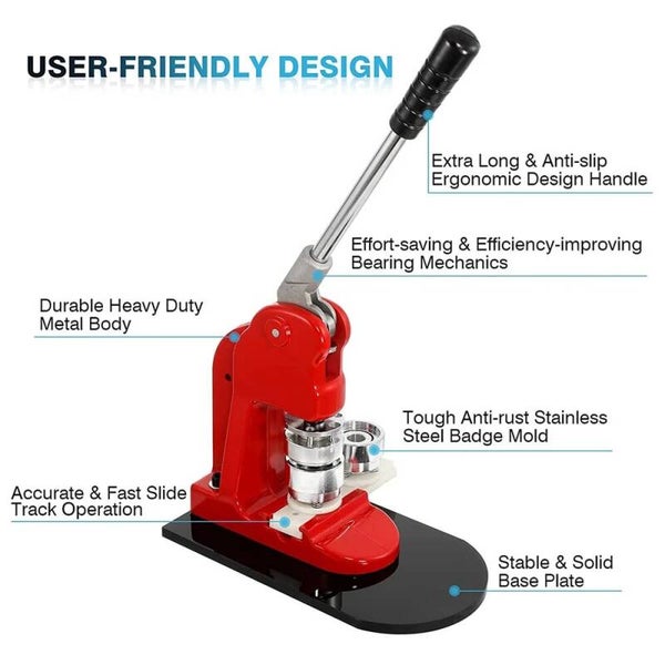🔹 Gebruiksvriendelijk ontwerp – Geen ervaring nodig! Met het intuïtieve en ergonomische ontwerp maak je moeiteloos badges.