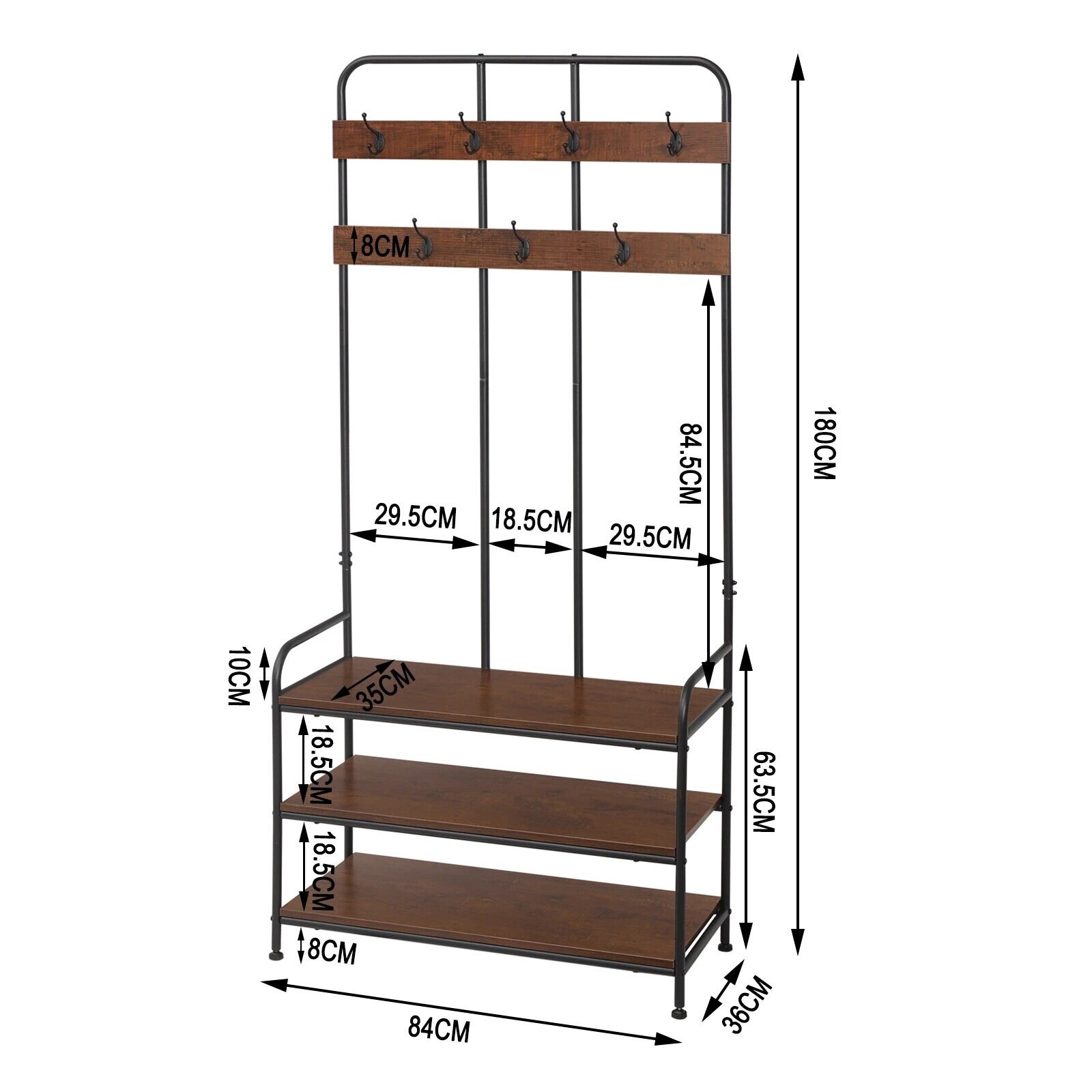 Maak een statement in je entree of hal met deze stijlvolle Industriële Kapstok Met Schoenenrek. Met een combinatie van functionaliteit en industriële esthetiek biedt deze kapstok een praktische oplossing voor het organiseren van jassen, sjaals, schoenen en meer.