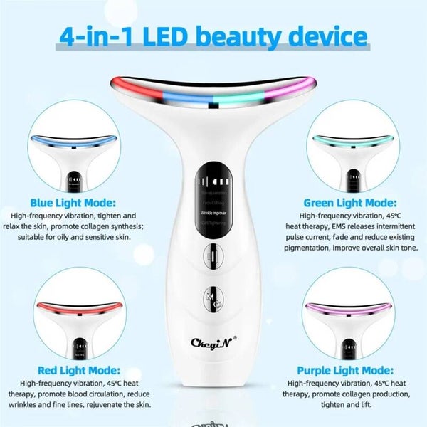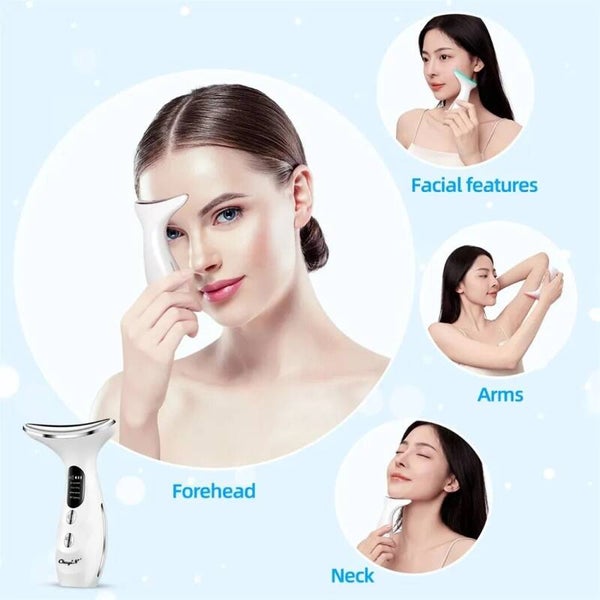 Het apparaat beschikt ook over LED-lichttherapie, die de huidvernieuwing stimuleert en helpt bij het verminderen van fijne lijntjes en rimpels. Bovendien is het ontworpen met een dubbele kin verwijderaar functie, waardoor je kunt werken aan het verstrakken van de huid onder de kin en de kaaklijn.