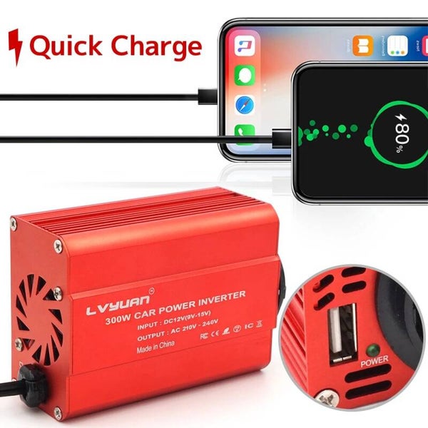 De 300W Auto Omvormer biedt een handige oplossing om gelijkstroom (DC) om te zetten naar wisselstroom (AC) in uw voertuig. Met een ingangsspanning van 12V DC en een uitgangsspanning van 110V of 220V AC, is deze omvormer geschikt voor verschillende elektronische apparaten en apparatuur, waaronder laptops, smartphones, camera's, en meer.