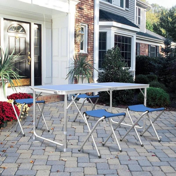Geniet van het buitenleven met deze handige aluminium kampeertafel inclusief 4 opvouwbare krukken. Met een lengte van 120 cm biedt deze opvouwbare tafel voldoende ruimte voor een comfortabele eetervaring, zowel op de camping als in de tuin.