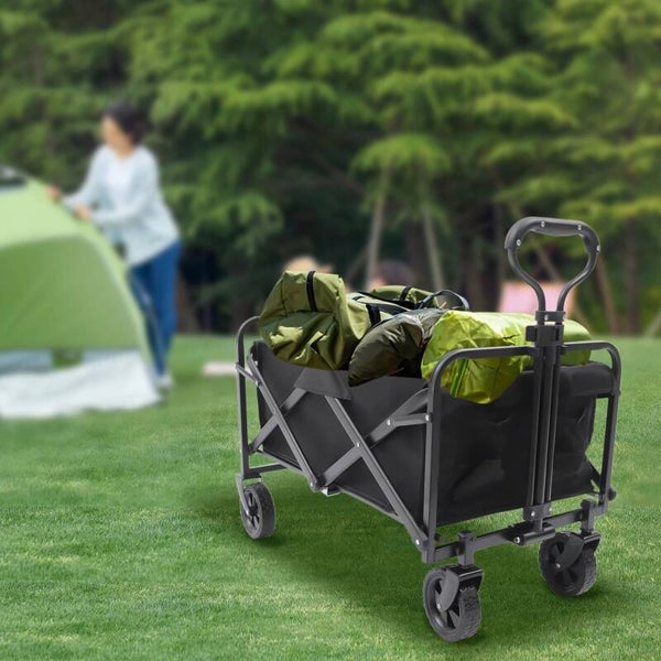 Maak het transporteren van spullen naar het strand, de tuin of andere buitenactiviteiten moeiteloos met deze opvouwbare heavy duty utility strandwagen. Deze handige kar biedt een robuuste en betrouwbare oplossing voor het vervoeren van al je benodigdheden, of het nu gaat om strandspullen, tuinmaterialen of kampeeruitrusting.