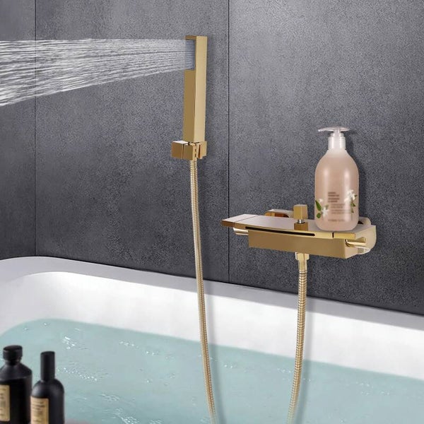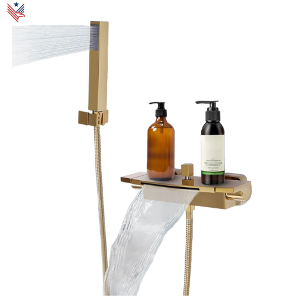 Voeg een vleugje elegantie toe aan uw badkamer met onze Waterval Badkraan voor Badkamer, voorzien van een prachtige gouden afwerking. Deze badkraan combineert stijlvol design met hoogwaardige materialen en functionaliteit voor een luxueuze douche-ervaring.