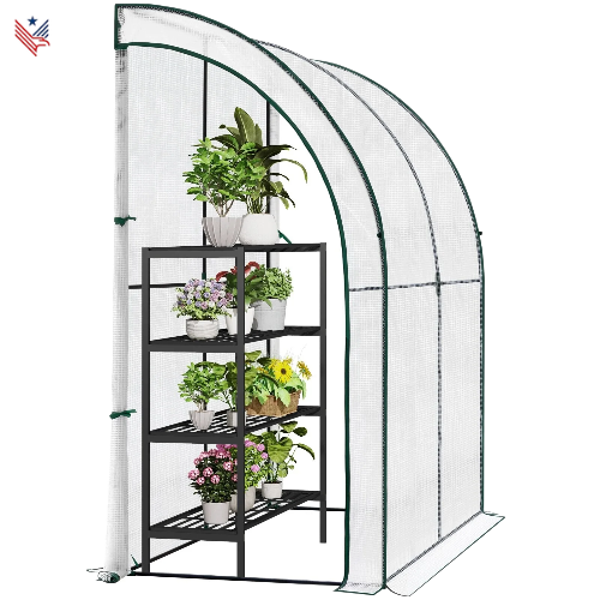 🌱 Eenvoudige Montage: De kas is gemakkelijk te monteren en kan naast een huis, garage of hek worden geplaatst. Voor extra stabiliteit kunt u de kas aan een muur bevestigen met bijgeleverde schroeven. Een accessoirekit (met schroeven, grondnagels en touwen) en een duidelijke handleiding worden meegeleverd voor een probleemloze installatie.