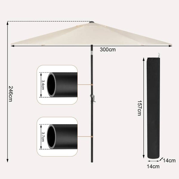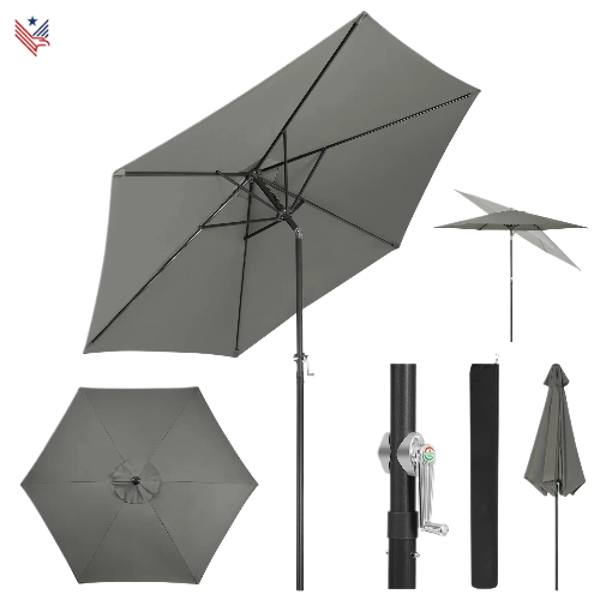 Gemakkelijk in Gebruik: Dankzij de crankmechanisme is het openen en sluiten van de parasol moeiteloos. De parasol kan worden vastgezet met een handige vergrendelingsmechanisme om hem stevig op zijn plaats te houden.