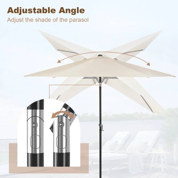45° Buigbare Crank: Met een handige 45° buigbare crank kunt u gemakkelijk de hoek van de parasol aanpassen om optimale schaduw te creëren, afhankelijk van de stand van de zon.