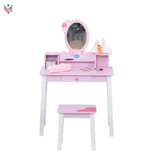 Kinder Toilettafel met Spiegel en Kruk - 59x39x92 cm