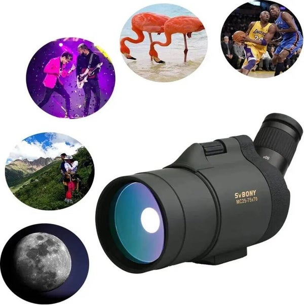 Ontdek de natuur en het universum als nooit tevoren met deze 25-75x70 krachtige spotting scope. Ideaal voor vogelliefhebbers, kampeerders en sterrenkijkers, deze telescoop biedt een uitzonderlijke combinatie van kracht, helderheid en duurzaamheid. Dankzij de variabele vergroting van 25x tot 75x en de grote 70mm objectieflens, geniet je van superheldere en gedetailleerde beelden, of je nu wilde dieren observeert of de sterrenhemel verkent.
