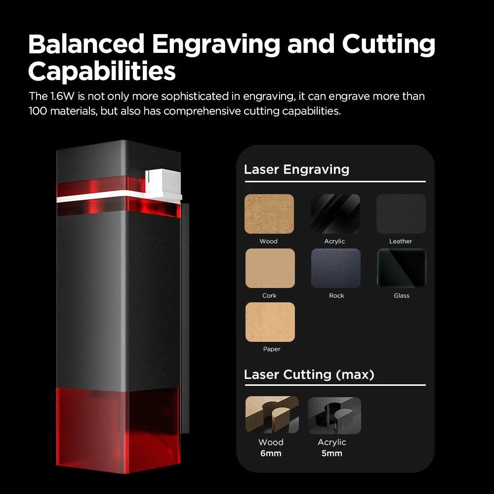 - Veelzijdig materiaalgebruik: Graveer op hout, acryl, leer, glas en meer – perfect voor allerlei creatieve projecten.