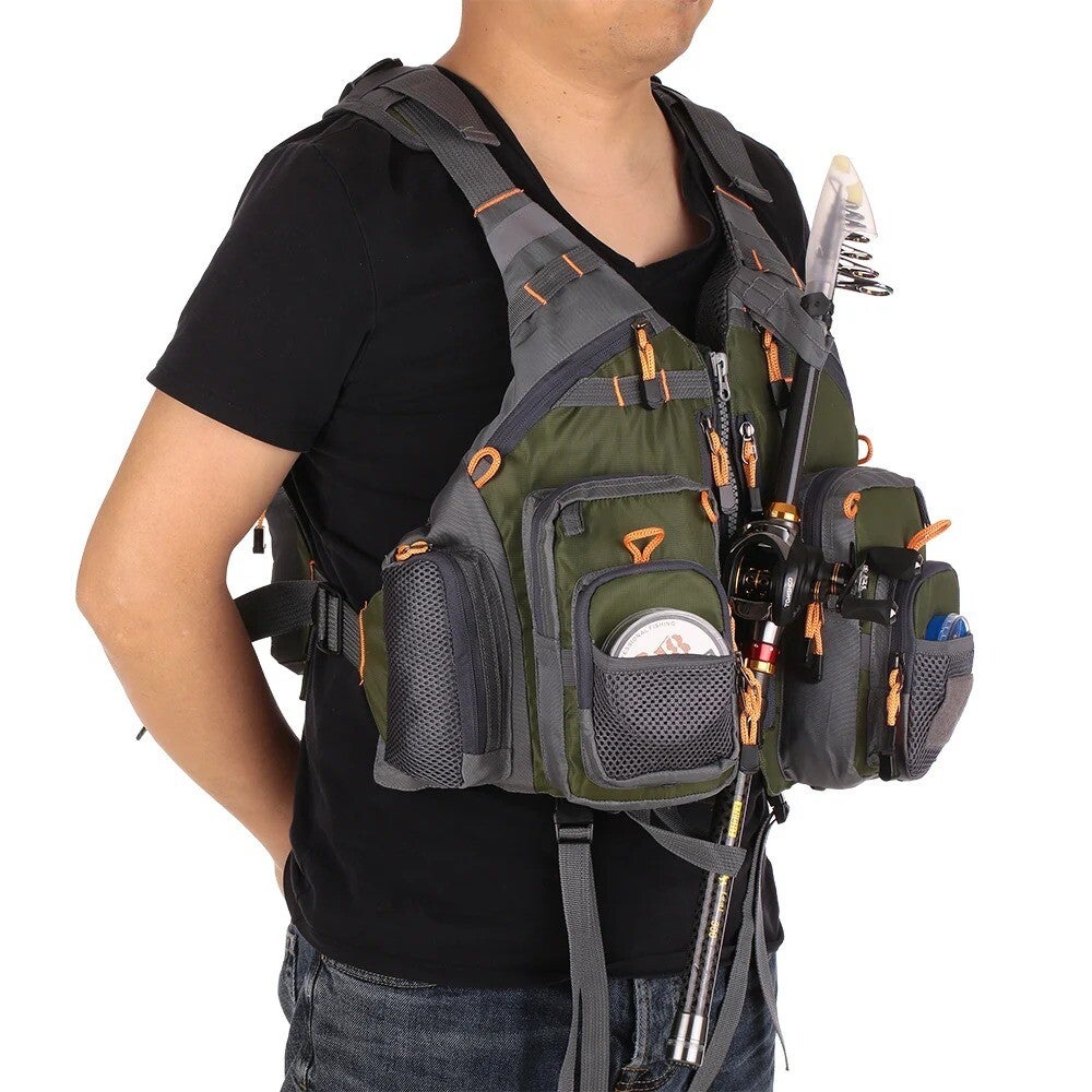 Dit multifunctionele vis- en reddingsvest is de perfecte metgezel voor elke watersporter! Of je nu gaat kajakken, vliegvissen of kanovissen, dit vest biedt zowel veiligheid als functionaliteit. Het is ontworpen met 11 opbergzakken, waaronder vier royale borstzakken, vier zakken met ritssluiting, en twee mesh-zakken aan de zijkanten. De grote achterzak biedt nog meer ruimte voor jouw uitrusting. Het vest is gemaakt van premium ripstop polyester met vervangbaar EPE-schuim voor een superieur drijfvermogen en ademend vermogen, zodat je altijd comfortabel blijft.