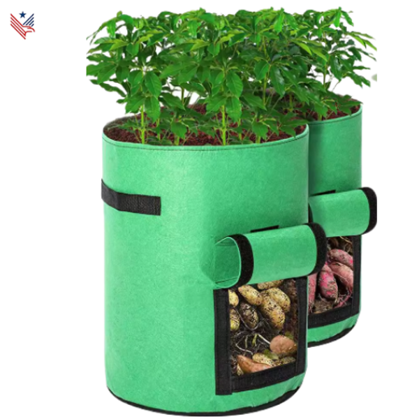 Kweek je eigen aardappelen eenvoudig met deze 10 gallon plantenzakken, ideaal voor je tuin, balkon of terras. Gemaakt van hoogwaardig, ademend PET-materiaal, bieden deze zakken de perfecte omgeving voor je planten om te gedijen. Dankzij het zijvenster oogst je snel en zonder rommel, terwijl de afvoergaatjes onderin de zak voor optimale drainage zorgen, zodat je aardappelen gezond blijven. Met dubbele handvatten kun je de zakken eenvoudig verplaatsen, en na gebruik vouw je ze compact op voor handige opslag. Deze herbruikbare en duurzame kweekzakken zijn ideaal voor tuinliefhebbers die op zoek zijn naar een efficiënte en praktische manier van groente- en aardappelteelt.
