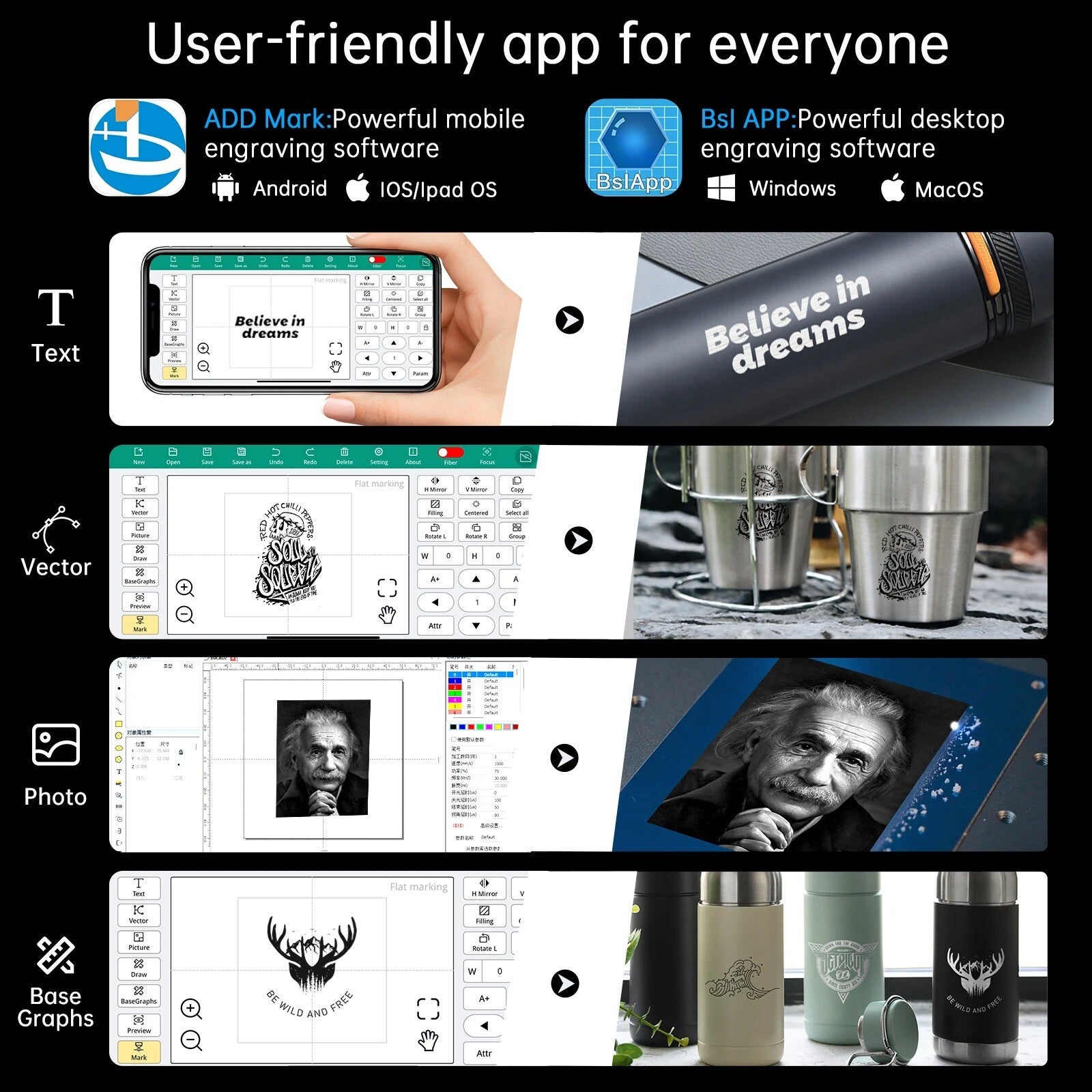 Razendsnelle graveersnelheid van tot 10.000 mm/s: De hoge snelheid maakt het mogelijk om snel grote hoeveelheden werk te doen, wat deze machine efficiënt maakt voor zowel professionele als hobbygebruikers.