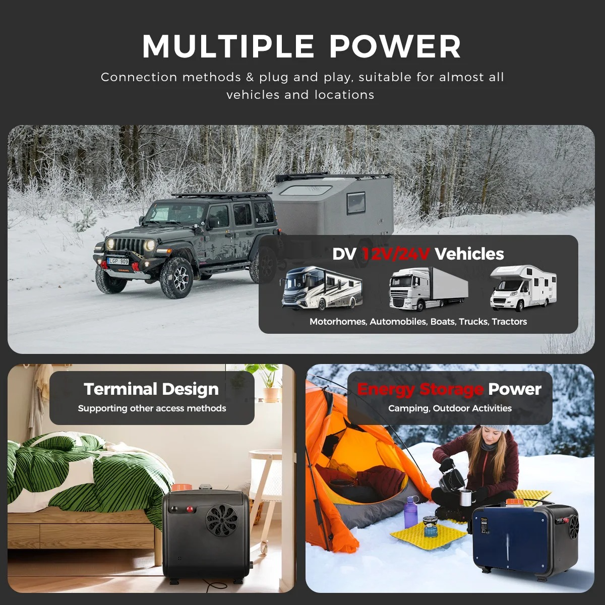Geniet van de ideale temperatuur, waar je ook bent, met de krachtige 8KW Diesel Luchtverwarmer. Geschikt voor 12V, 24V en 220V, deze ultra-stille nachtverwarming biedt efficiënte verwarming voor je auto, trailer, vrachtwagen, garage of camper. Dankzij de Bluetooth-connectiviteit en LCD-schalter kun je eenvoudig de temperatuur en instellingen regelen, zelfs op afstand.