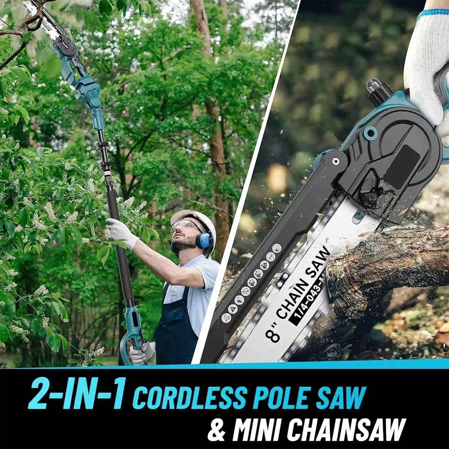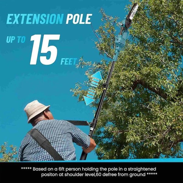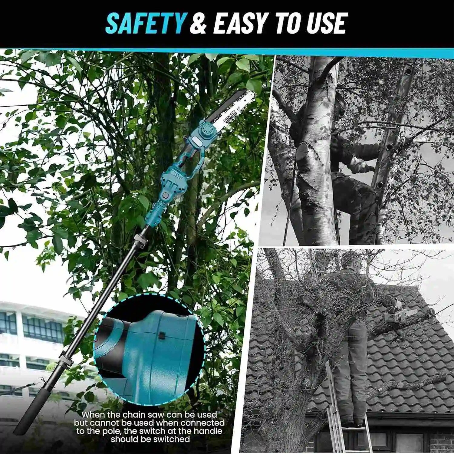 Elektrische Kettingzaag 2 in 1 (voor afstand) – Draadloze Telescopische Paalzaag 8 Inch | Sterke Borstelloze Motor | Hoogtebereik tot 15,5 Meter | Geschikt voor Makita 21V Batterij
