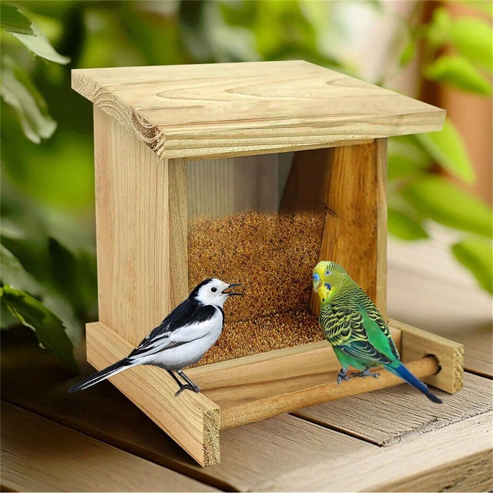 - Beschermd en droog voedsel: Het openende dak beschermt de vogelzaadjes tegen regen en vocht, terwijl het acrylpaneel in de opening zorgt voor een gecontroleerde en stabiele stroom van zaden.