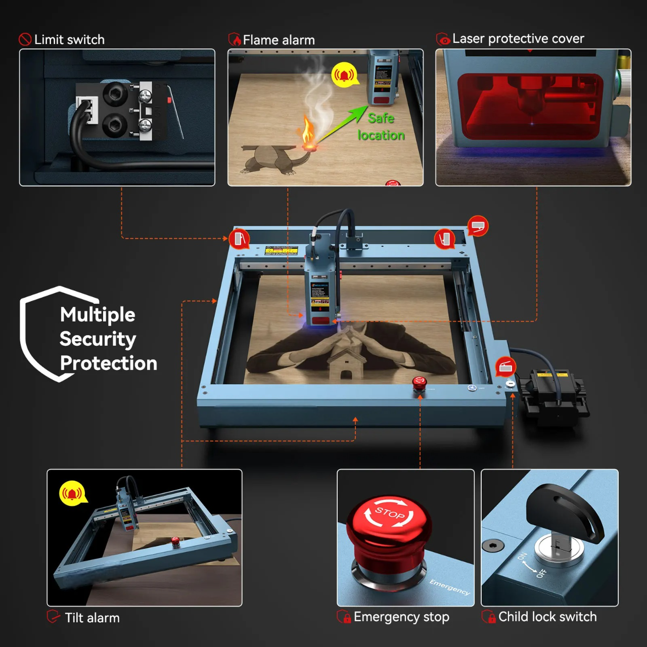 Laser graveermachine 40W β Graveersnelheid Tot 36.000 mm/min & Automatische veiligheidsensoren
