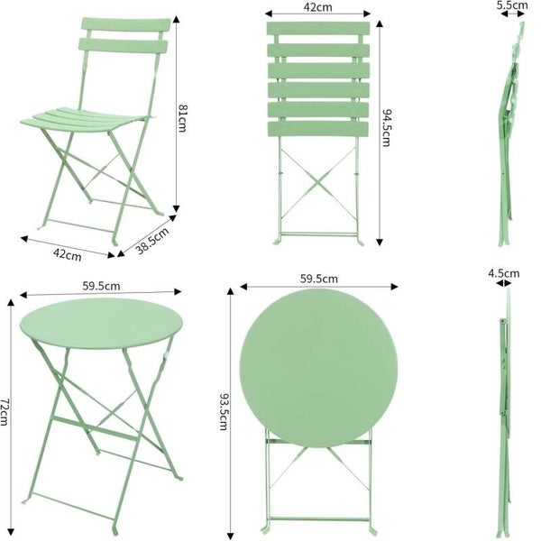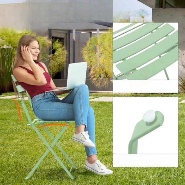 Eenvoudig te monteren – Vouw de set eenvoudig uit en zet hem neer waar je wilt. Binnen enkele seconden kun je genieten van je nieuwe tuinmeubel zonder gedoe. De stevige stalen constructie biedt stabiliteit, zodat je je geen zorgen hoeft te maken over wiebelende stoelen of tafels. Ideaal voor een snelle maaltijd, een drankje, of gewoon om te ontspannen in de buitenlucht.