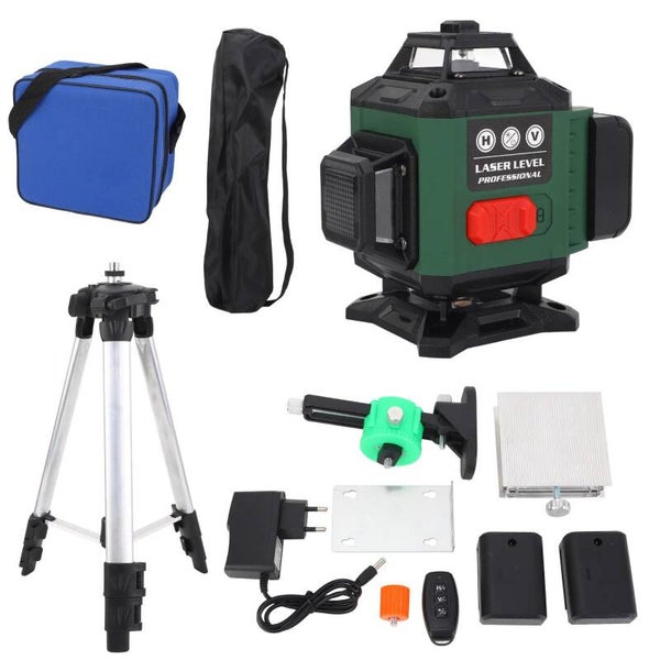 16-Lijns Groene Laserwaterpas met Zelfnivellering tot 3° – Professionele 360° Nivelleer Tool met Afstandsbediening, Wandmontage & Optioneel Statief – Voor Binnen- en Buitenklussen