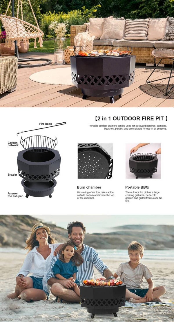 Deze ronde houtgestookte vuurplaats biedt de perfecte sfeer en warmte voor zowel kamperen als tuinfeesten. Met een robuuste constructie van hoogwaardig staal en een hittebestendige verflaag, is deze vuurmand ideaal voor buitengebruik. Of je nu gezellig bij het vuur wilt zitten of een BBQ wilt houden, deze multifunctionele vuurpan heeft alles wat je nodig hebt.