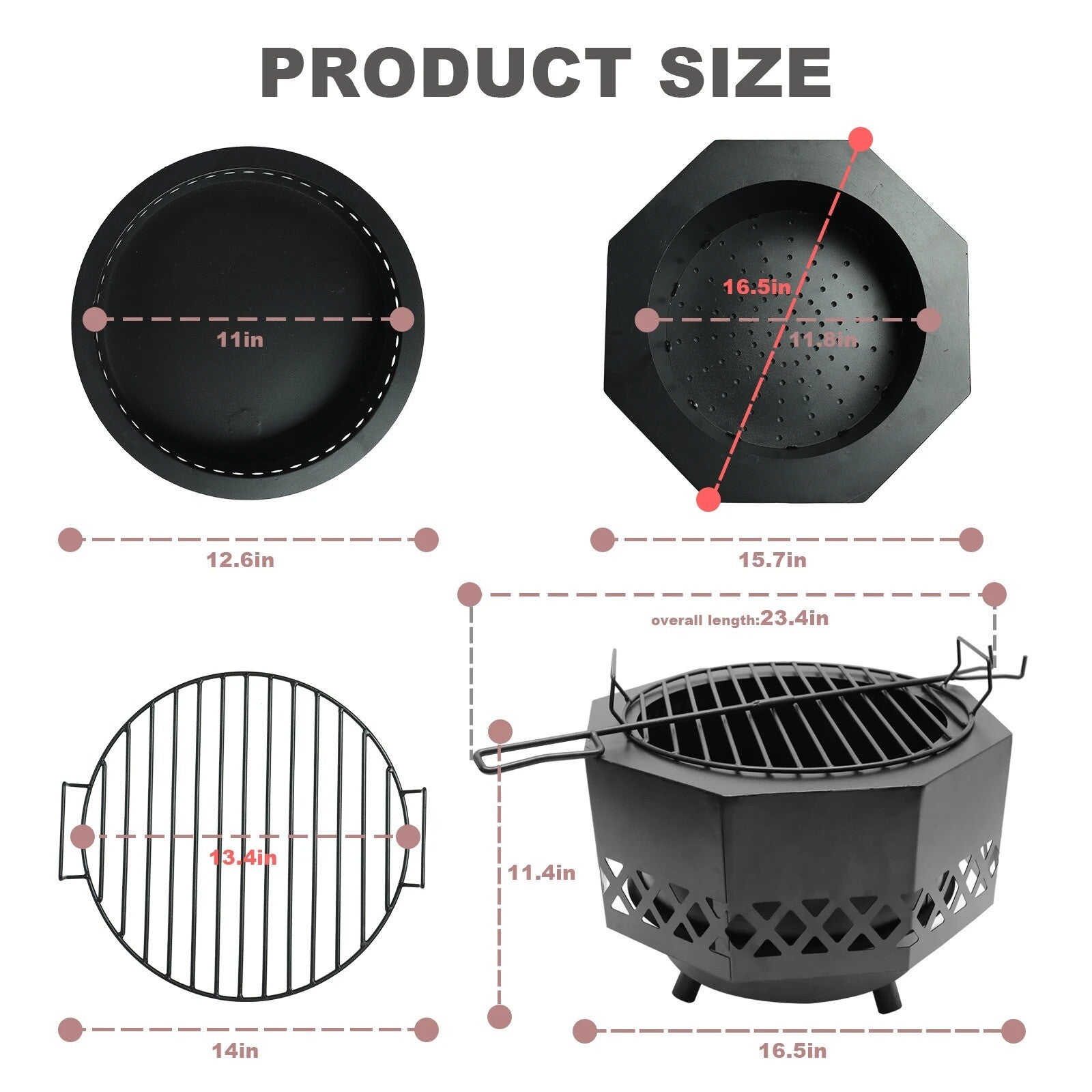Dankzij de snel verwijderbare kookgrill kun je eenvoudig maaltijden bereiden boven het vuur, terwijl de praktische driebenige basis zorgt voor extra stabiliteit. De ventilatieopeningen zorgen voor een efficiënte verbranding, waardoor je minder rook ervaart en langer van het vuur kunt genieten. Dit maakt het de perfecte keuze voor zowel ontspanning als koken in de tuin, op het terras, of bij het kamperen.